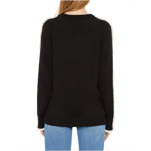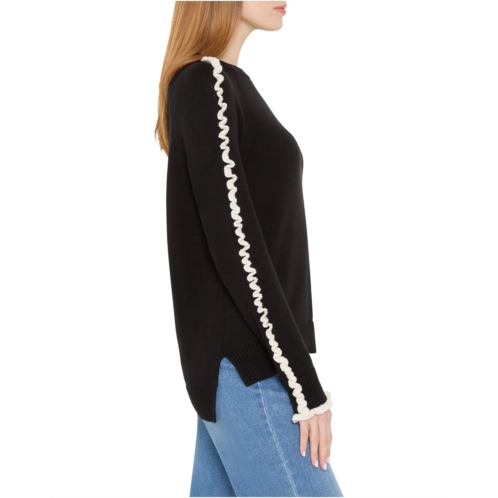 Cozy up and shine with crafted embellished knitwear: a key to elevated layering. Feminine and timeless, The Ruffled Down Sweater features unique ruffle detailing from the shoulders down to the cuffs. With a unique high/low hem and comfy raglan sleeve. Includes just a touch of cashmere in the yarn to add an extra bit of softness.