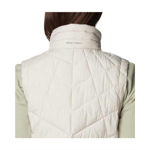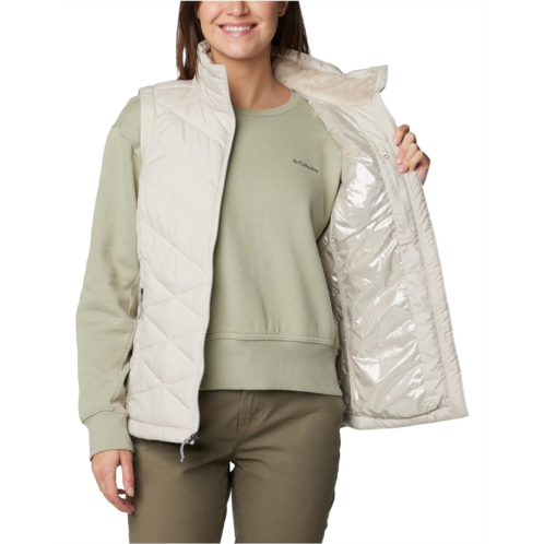 - Enjoy outdoor adventures while keeping yourself warm and cozy in the Columbia Heavenly II Vest. The sleeveless vest comes with Omni-Heat thermal reflective technology, Omni-Shield advanced repellency, and a plush-lined collar for absolute warmth in low temperatures. It features a high-standing collar, full-zipper closure, an interior security pocket, and zippered hand pockets for added functionality.