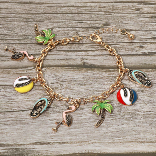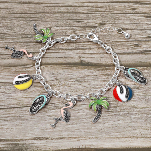 [US] FASHNZFAB fun tropical palm tree flamingo flip flop beach ball charm station bracelet