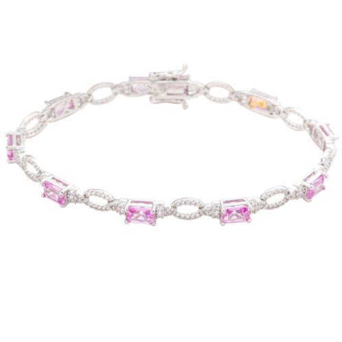 [US] SUZY LEVIAN sterling silver emerald-cut pink sapphire and diamond accent tennis bracelet