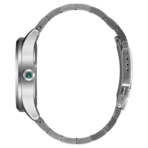 - Stainless steel bracelet strap with folding clip deployment closure.
