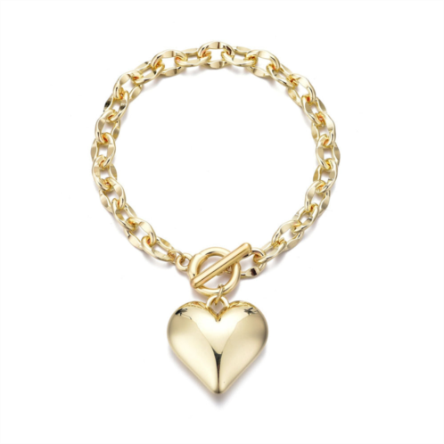 Adornia Women's Gold Plated Puffy Heart Link Bracelet