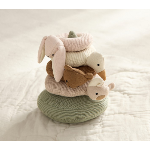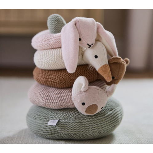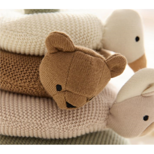 Soft and stackable, our toy turns playtime into a cozy critter parade. Knit from organic cotton with ribbed detailing for tiny hands to explore, each ring features a sweet animal friendbunny, koala, swan and bear. Perfect for building fine motor skills and encouraging early problem solving, it’s a cozy twist on classic stacking fun.