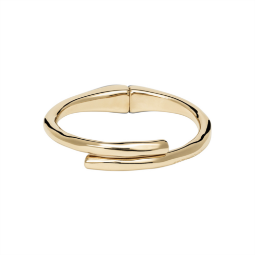 - A tube-shaped silver cuff featuring a hidden spring clasp for discreet closure.