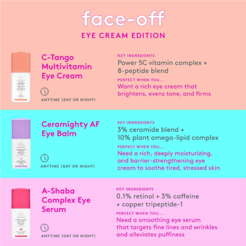 What Else You Need to Know: C-Tango is a dance of potent antioxidants, replenishing ceramides, plant oils, and soothing actives. All are designed to refresh and restore a radiant appearance. This formula is gentle enough for AM and PM use, but powerful enough to improve even stubborn signs of damage. This eye cream is free of essential oils, silicones, and fragrance, and is dermatologist tested.