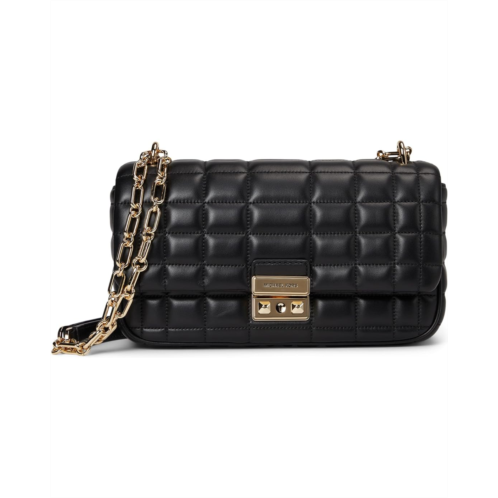 - Step out in style carrying the MICHAEL Michael Kors Tribeca Large Convertible Chain Shoulder bag. Crafted from premium leather, this bag features a timeless quilted design that adds a touch of elegance to any outfit. The stunning goldtone hardware accents the bag beautifully, while the flap closure with magnetic snap ensures your belongings are safe and secure. The adjustable chain-linked crossbody strap offers versatility and convenience for on-the-go fashion.