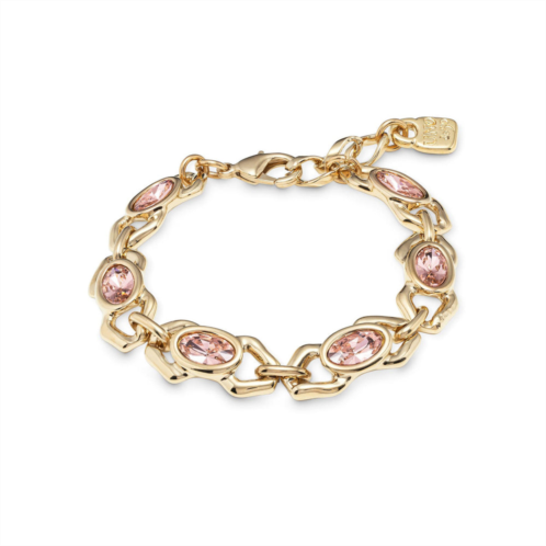 - This chandelier-inspired bracelet features six spider-leg links with blue crystals.