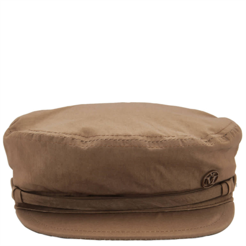 Maison Michel Ladies Hats. Fashion category - Hats. SKU - 2213078001. Color - True Camel. Maison Michel New Abby Iconic Sailor Cap. This cotton blend hat features a flat top with a curved edge, a logo applique, and a black cord strap, a slip-on design. 100% Cotton.