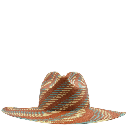 Van Palma Ladies Hats. Fashion category - Hats. SKU - EMA-TERRA & BEIGE. Color - Multicolor. Van Palma Terra Beige Ema Straw Large Brim Hat. The Van Palma 'Ema' hat is a handwoven straw design featuring a colorblock pattern, a UV-blocking wide flat brim, and a pinched crown. 100% Toquilla Straw Hat. Made in France.