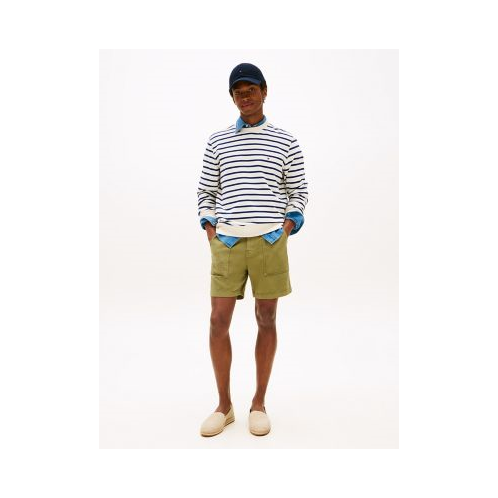 Tommy Hilfiger men's short. Patch pockets lend a utility feel to these denim shorts. Designed with a partial elastic waistband, this rugged style is also super comfortable.