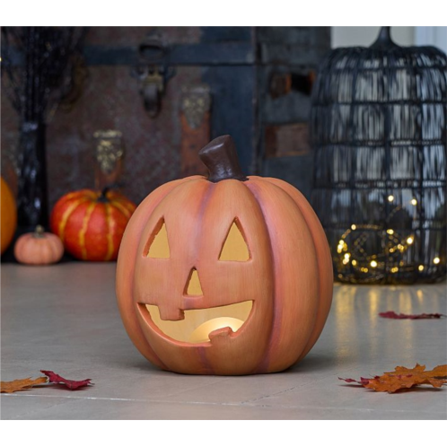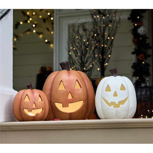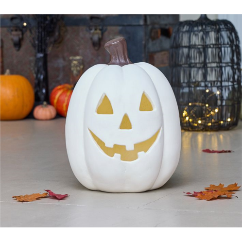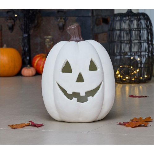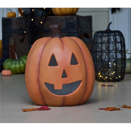 We’ve reimagined the classic carved pumpkin in a timeless paper-mache design. With its trademark triangle eyes and toothless grin, our jack-o’-lantern is fit with an energy-efficient LED to brighten your porch or entryway. Just set the timer and let it glow.