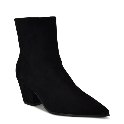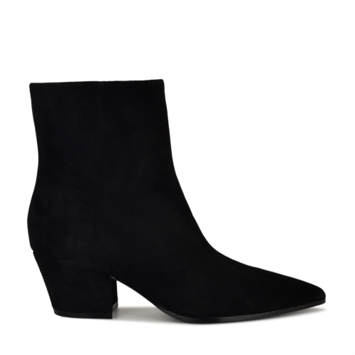 [US] Womens Savie Block Heel Ankle Leather Booties - Black Suede Nine West