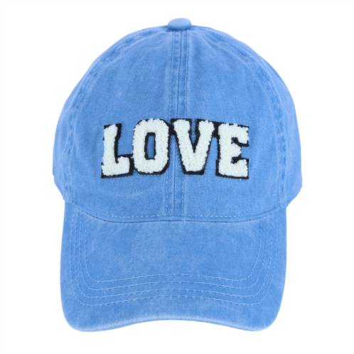 This baseball cap is made with washed denim fabric, giving it a cute and casual distressed appeal. The chenille LOVE letters on the front add a fun and fashionable look. The back t-slide can be adjusted to your preferred fit.