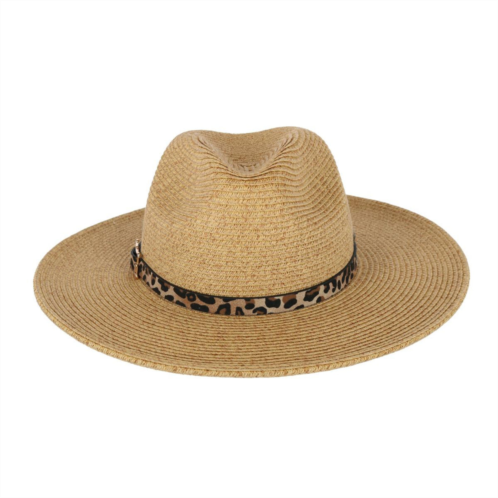 [US] Karen Keith womens braided toyo fedora sun hat with leopard hat band