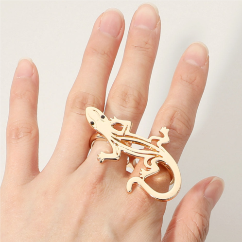 [US] FASHNZFAB secret box_14k gold dipped lizard two finger ring - gold