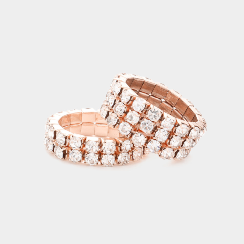 [US] FASHNZFAB 2pcs - rhinestone stretch rings - rose gold