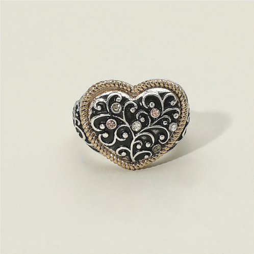 [US] FASHNZFAB vintage stone paved heart filigree stretch ring