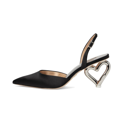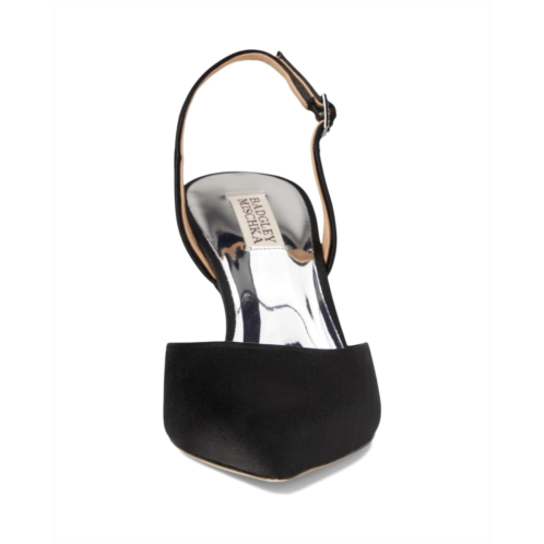 - Get ready for the party night by wearing Badgley Mischka Lucille pumps. Crafted from satin upper, the pumps feature pointy toe, slide-on style, and adjustable ankle strap with buckle closure. A breathable leather lining, synthetic insole, and heart-shaped cone heel makes the pumps outstanding in the look.