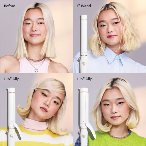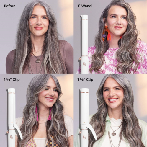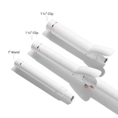 - Interchangeable 1” wand, 1.25” clip, and 1.5” clip barrels for maximum styling versatility
