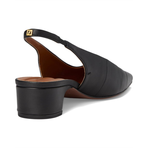 - The Franco Sarto Lyanna is a sleek slingback pump that blends vintage charm with modern sophistication. Crafted with a leather upper, it features a square toe, a stretch slingback strap for easy wear, and a low block heel. The synthetic lining and synthetic rubber outsole offer lightweight comfort, while the padded footbed adds subtle cushioning for all-day wear.