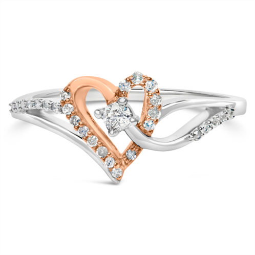 [US] Haus of Brilliance 10k rose gold plated .925 sterling silver 1/5 cttw diamond two tone open heart promise or fashion ring
