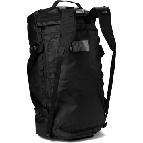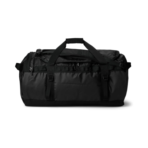 - Made from 1000D polyester with phthalate-free PVC coating and Non-PFC DWR finish, The North Face Base Camp Duffel 1-L is designed for camping and outdoor adventures. Water-and-tear-resistant, this duffel bag provides protection against rough handling and even rougher weather. It features mesh-bag packaging that helps keep it clean while the extra bartacks and double stitching ensure durability. This camping bag comes with four compression straps, two removable and adjustable alpine-cut shoulder straps, and two padded side handles that serve as both duffel carry handles and haul handles. Designed with a water-resistant ID window on top, this duffel bag will become your favorite travel companion.