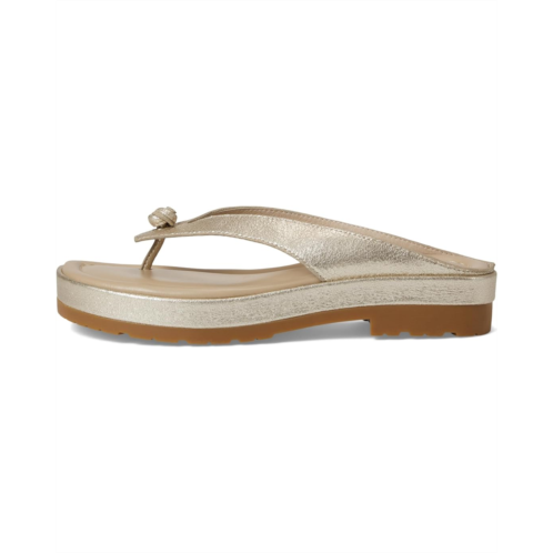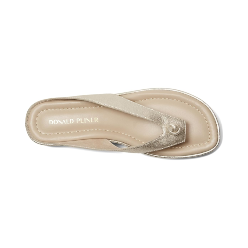 Add some height to your stride. wearing the Donald Pliner Seena. Crafted from leather upper, leather lining and insole, this pair of sandals features open round toe, extended upper straps, toe post with knot detail, memory foam sock lining and brand detailing on the footbed. It comes with low block heel.