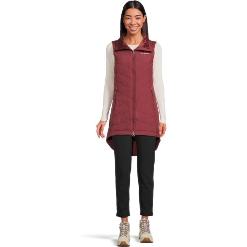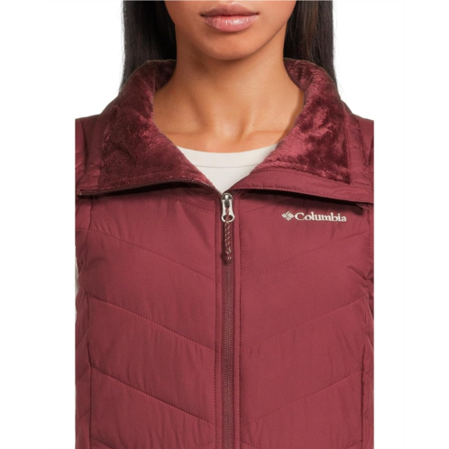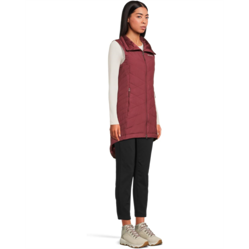 - Heading out for a casual walk or taking on adventures along the trails, this Columbia Heavenly II Long Vest is perfect for both. Crafted with the Omni-Heat thermal reflective technology and Omni-Shield advanced repellency technology, this sleeveless vest keeps you warm and cozy. It features a high-standing plush fleece-lined collar, a 2-way center-front zipper closure, an interior security pocket, two zippered pockets on the front, and brand logo detail for authenticity on the left chest.