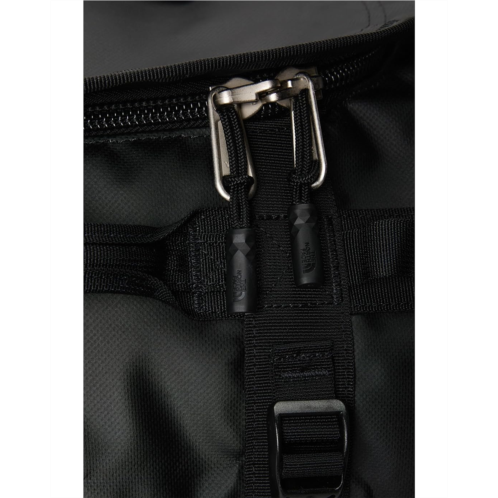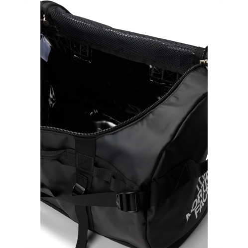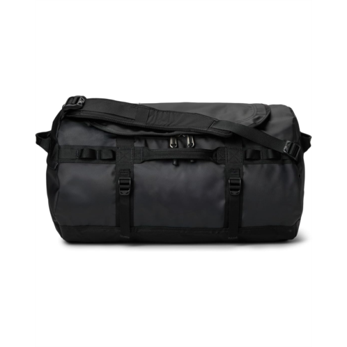 - The North Face Base Camp Duffel 1-S is the perfect travel companion made from recycled polyester with a phthalate-free PVC coating. Its water-resistant design and zippered top closure keep your belongings safe and dry on all your adventures. With detachable and adjustable shoulder straps, two padded side handles, and a Non-PFC Durable Water-Repellent finish, this duffel is as functional as it is eco-friendly.