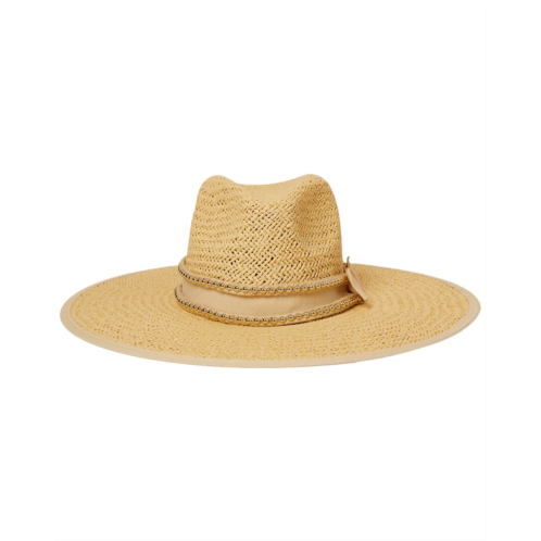 Introducing the stylish 'BTB Los Angeles Cassie Studded Rope Straw Hat' for women. This trendy hat features a natural color/pattern with a chic ribbon trim design. Made from 100% straw, this hat comes in small, medium, and large sizes. Perfect for sunny days, this imported accessory should be spot cleaned only. Please note that slight variations may occur as all measurements were taken by hand. Complete your look with the fashionable Cassie Studded Rope Straw Hat from BTB Los Angeles.