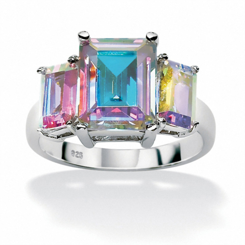 [US] Palm Beach Jewelry 5.60 cttw. emerald-cut aurora borealis cubic zirconia sterling silver ring