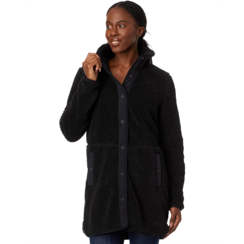 - Featuring a snap-buttoned closure on the front, the L.L.Bean Sherpa Coat comes with a high-collared neckline and long sleeves. This coat has two side pockets for utility. Intended to hit at the thighs, this coat is perfect for your everyday wear style.