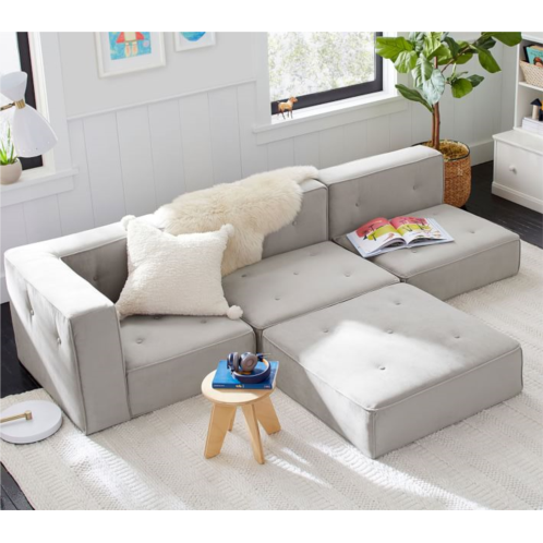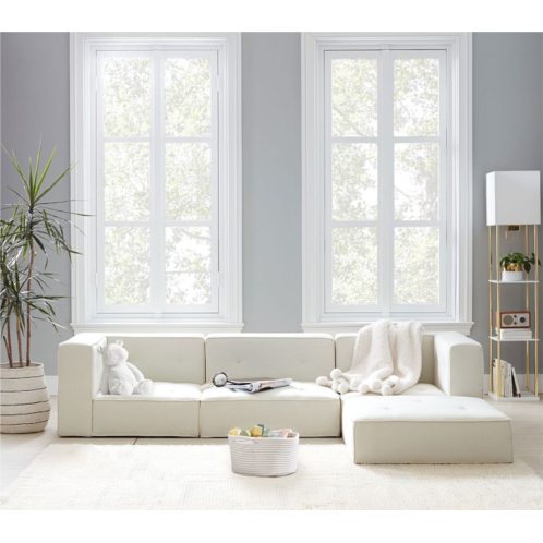 Configure their space with our modular collection. Featuring a sleek profile, piped edges and square cushions, it's a timeless and cozy take on lounge seating that's perfect for a nursery or child's room.