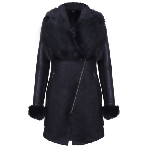 [US] Infinity Leather womens black merino shearling coat with toscana collar-fortaleza