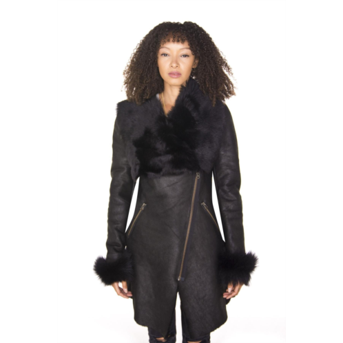 [US] Infinity Leather womens black merino shearling coat with toscana collar-romford