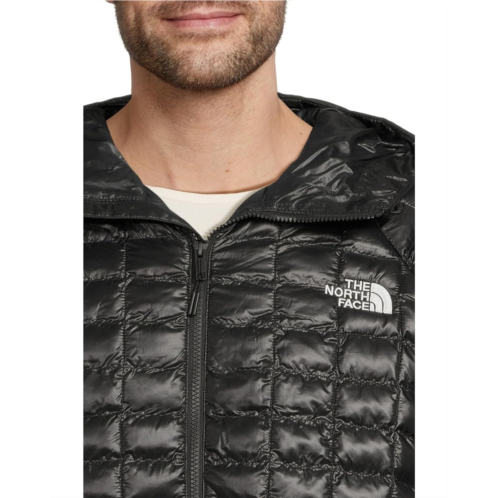 - The North Face ThermoBall Hooded Jacket is your go-to layer for lightweight warmth and versatile performance. Engineered with THERMOBALL synthetic insulation, it mimics the loft of down while maintaining warmth even when wet. The WINDWALL recycled polyester shell offers wind resistance, and a non-PFC DWR finish adds eco-friendly water repellency. Additional features include an adjustable hood, secure-zip hand pockets, elastic cuffs, and a cinch-cord hem for a customizable fit. Plus, it conveniently packs into its own pocket, making it an essential grab-and-go layer for any adventure.