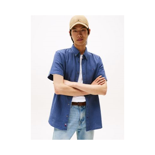 Tommy Hilfiger men's shirt. Our double-layer gauze shirt combines a soft drape and an opaque finish. Designed with short sleeves in an easy fit, it's ideal for the warmest days of the year.