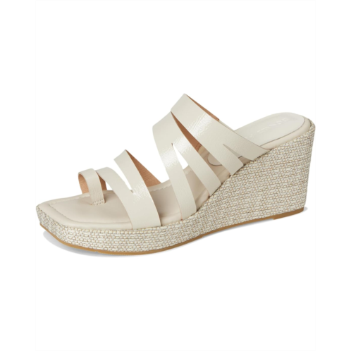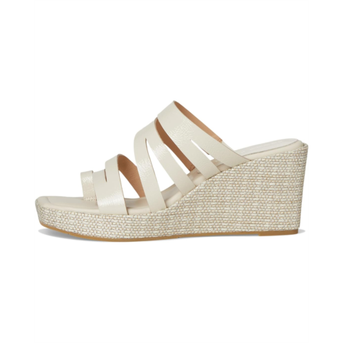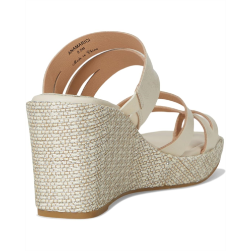 The Donald Pliner Anamari sandal gives you effortless height, featuring a brushed metallic Laser-cut, multi-strapped leather upper atop a tall wedge heel. These open round-toe sandals come with a leather lining. The leather insole with memory foam sock lining and stretch gores adds extra comfort to this slip-on style, while a toe ring and a rubber outsole keep it stable.