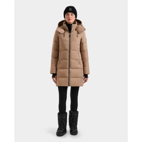 The MIRIAM by RUDSAK is a women's mid-length down puffer designed in a matte weather resistant shell, insulated with premium RDS-certified down for an maximum warmth-to-weight ratio. Featured a removable hood and silver zippers and trims, it also has inner backpack straps for hands-free carrying on the go. Let this puffer take you through cold months and be your winter wardrobe staple