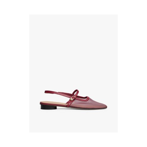 - Slingback design, round heel, buckle closure, leather lining, polyurethane insock.