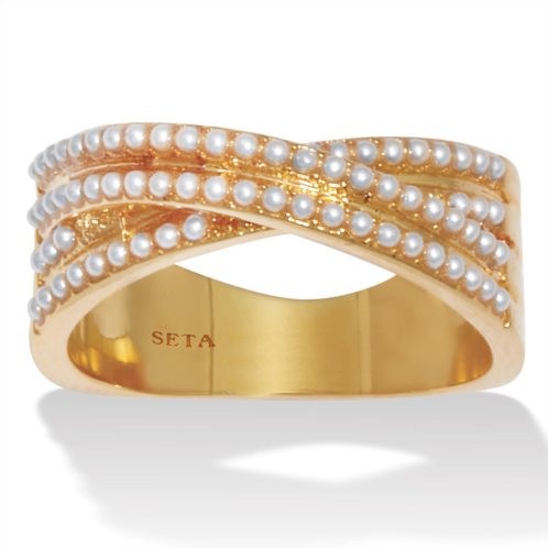 [US] PalmBeach Jewelry crossover pave pearl 14k gold-plated ring