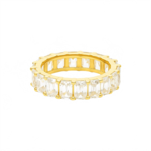 The wear-everywhere ring that you won't want to take off.The Women's Sterling Silver Radiant Cut Moissanite Eternity Band Ring by Atlanta Jewelers Supply is a stunning piece crafted with fine precision. Featuring a radiant cut moissanite design, this ring is elegantly gold plated and has a thickness of 4mm, making it a standout accessory. Perfect for any occasion, this fine jewelry piece reflects sophistication and timeless beauty. Ideal for those who appreciate quality craftsmanship and elegant design.