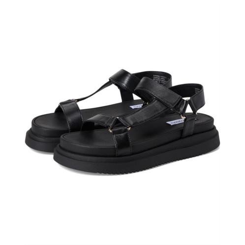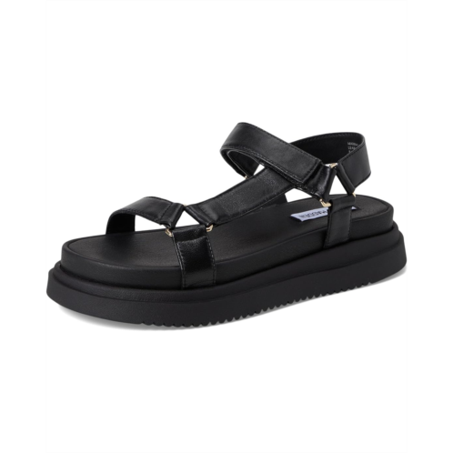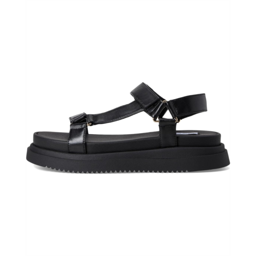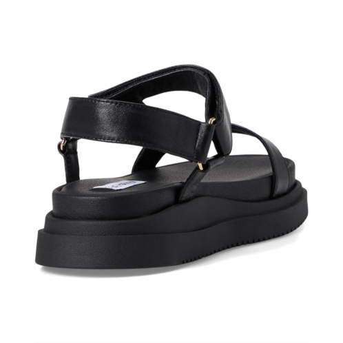 Steve Madden MATINA secures a graduated flatform sole with an athletic-inspired strap design for a supportive, adjustable fit. The sandals feature leather upper, faux leather lining, insole, and synthetic rubber outsole.