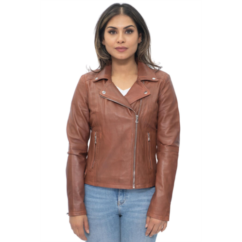 [US] Infinity Leather womens tan Leather biker jacket-sacramento