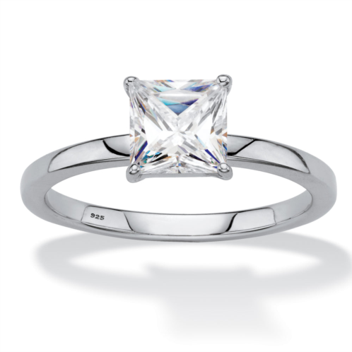 [US] Palm Beach Jewelry 1.16 cttw. princess-cut platinum-plated silver white sapphire engagement ring