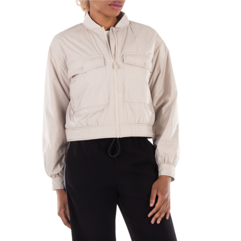 Save The Duck Ladies Outerwear. Fashion category - Coats & Jackets. SKU - D31609W-MIRO18-40019. Color - Beige. Save The Duck Lilin Bomber Jacket. It features a cropped design with a zippered front, two flap chest pockets with button closures, and a ribbed collar and cuffs for a snug fit. Material - Polyester.