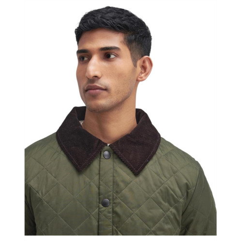 - Add a touch of sophistication to your look choosing the Barbour Heritage Liddesdale Quilted Jacket. Boasting a signature diamond quilt design and a contrast corduroy collar, this jacket is both stylish and practical. The wind-resistant synthetic outer provides protection from the wind, while the snap closure on the front offers a secure fit. Featuring long sleeves and two patch pockets on the front, this jacket is perfect for everyday wear.