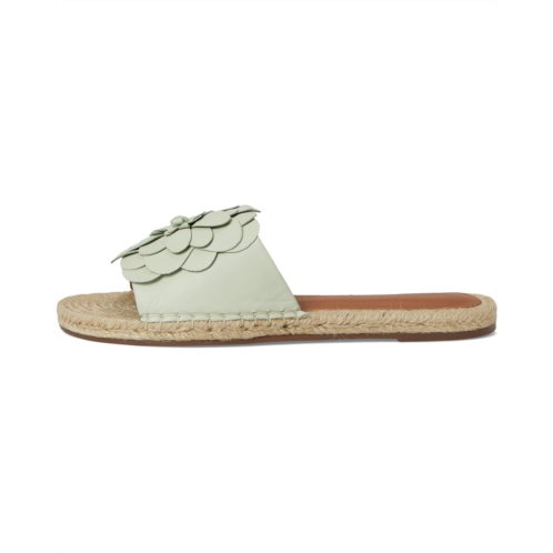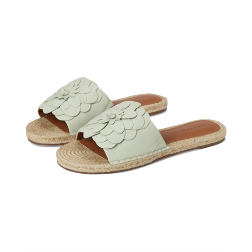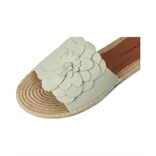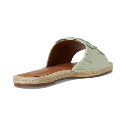 The Lucky Brand Biricha Floral Flat Sandals feature dimensional floral detailing on the upper, offering a chic look. These slip-ons are crafted with a leather upper and a durable rubber outsole for lasting wear.