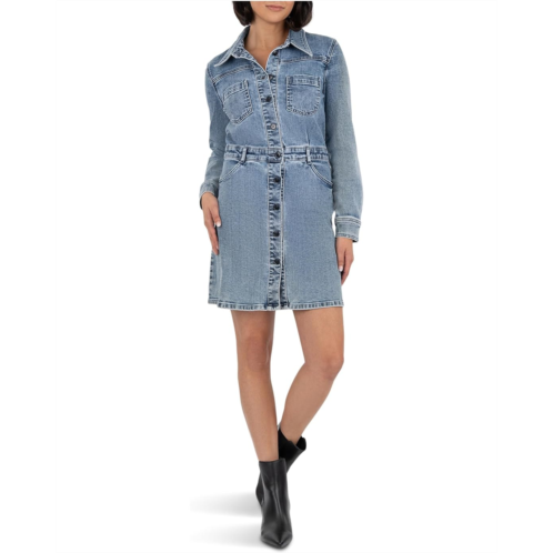 Elevate your denim style in the KUT from the Kloth Arlington - Button Front Dress w/ A-Line Skirt & Waistband. Featuring a spread collar with a front button closure, long sleeves with button closure cuffs, chest patch pockets, front hand pockets, and a belt loop waist.
