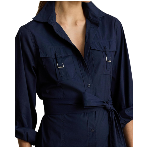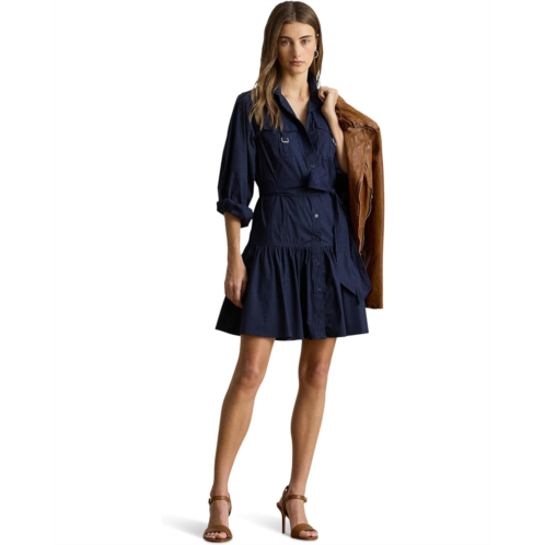 A self-belt accentuates the waist of this Lauren Ralph Lauren Buckle-Trim Cotton-Blend Dress, which unites surplus-inspired, buckle-trim patch pockets with a feminine flounced hem. It features a pointed collar, long blouson sleeves with buttoned barrel cuffs, two buckled-flap patch pockets, and threaded belt loops. This effortlessly stylish dress features shirring into the flounce seam, front and back vertical body seams, and a chic back yoke detail.